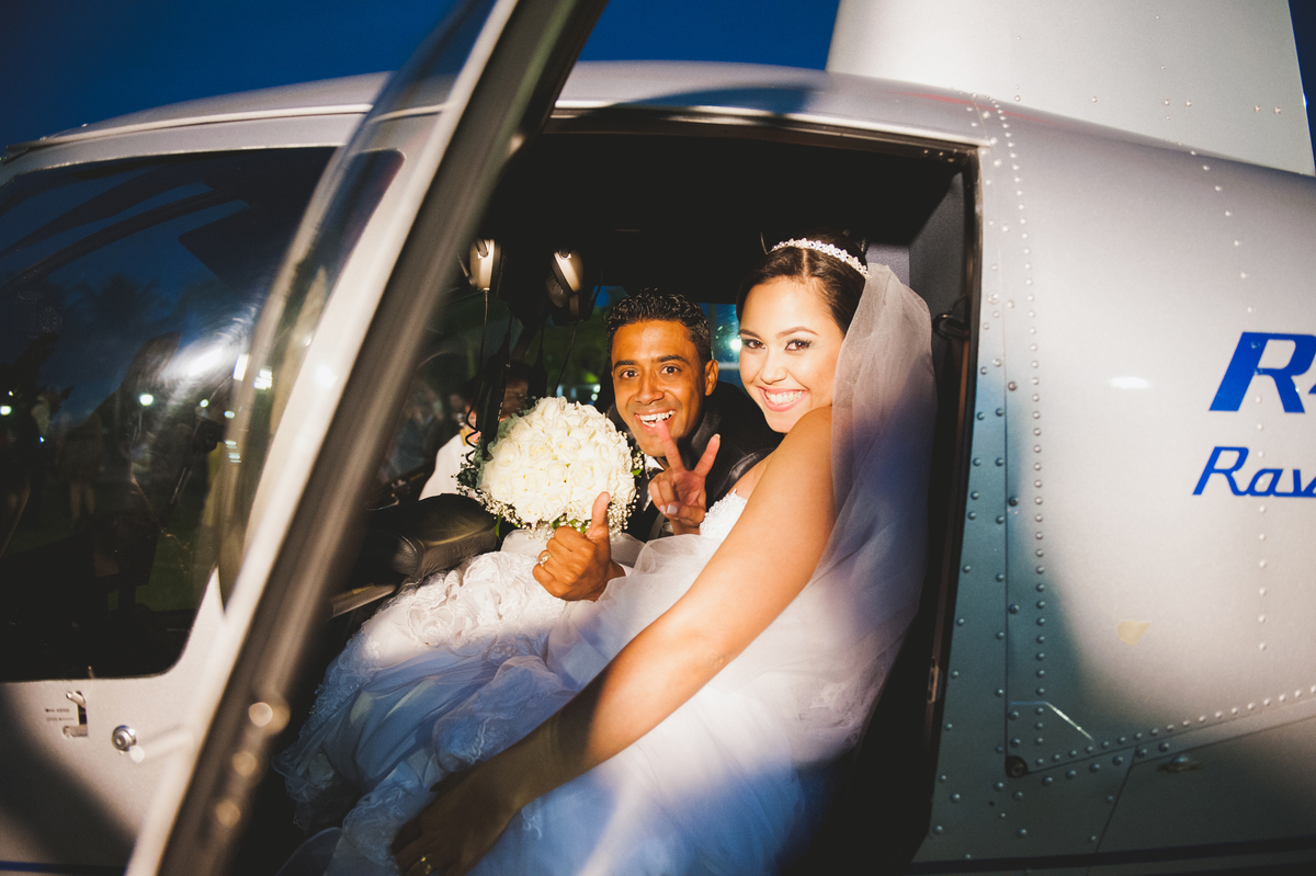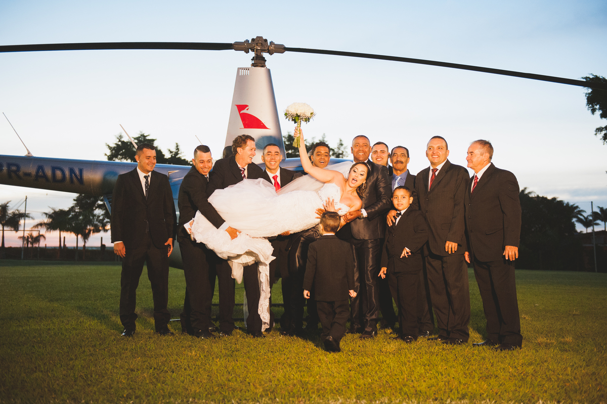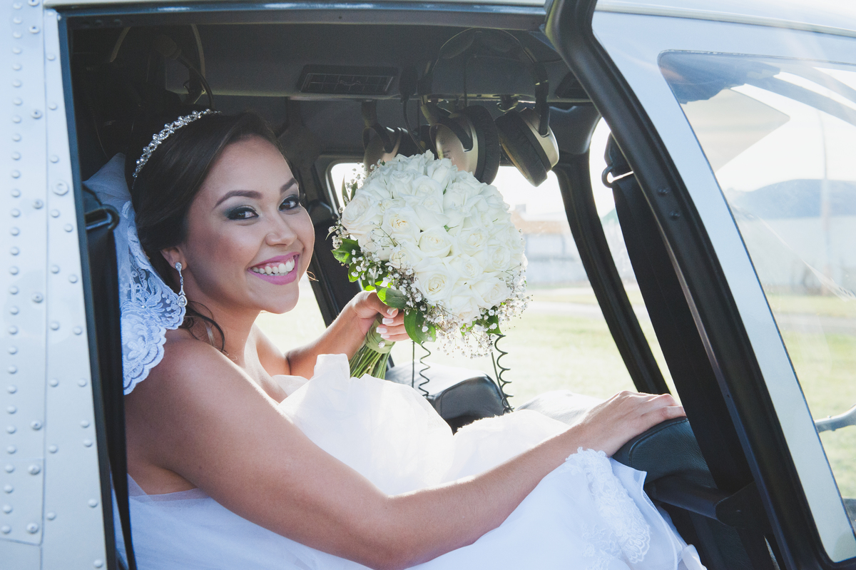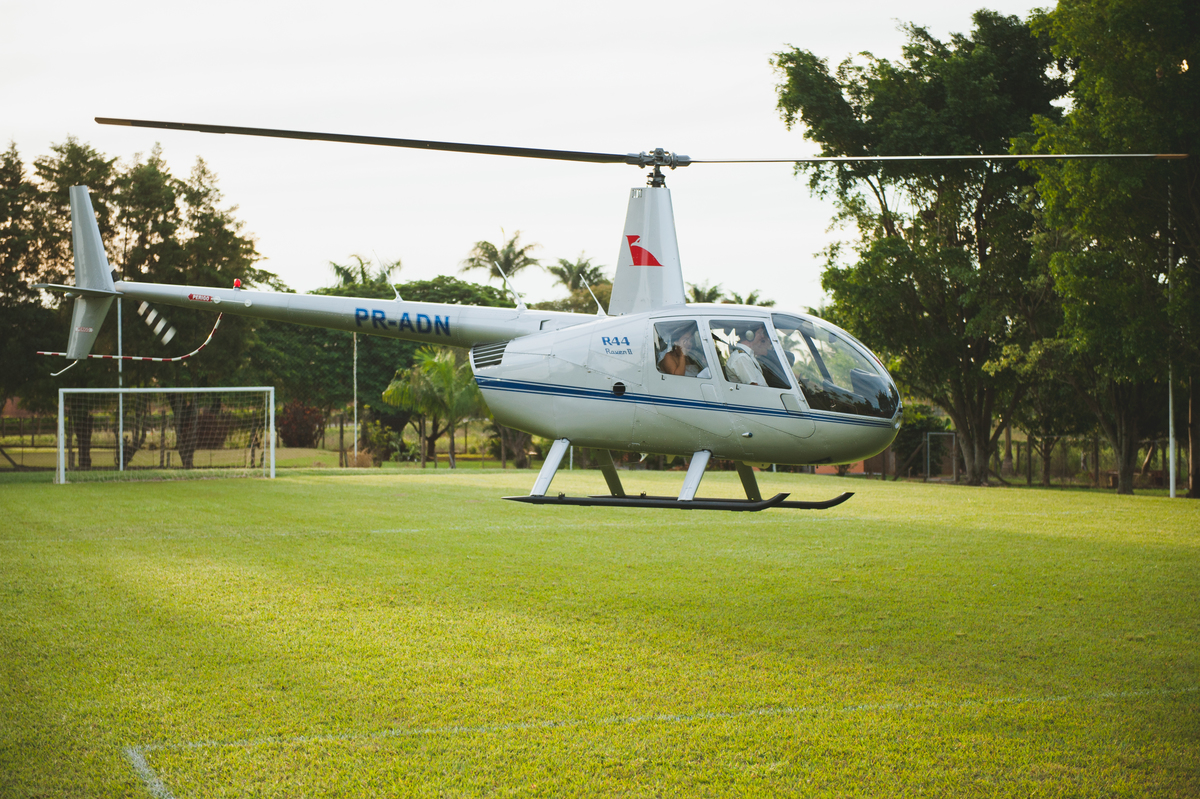 Desde a emocionante chegada da noiva de helicóptero até o idílico cenário ao ar livre, onde o campo se encontra com o por do sol, cada imagem conta uma história de amor autêntica e inesquecível.